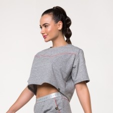 • Cropped Street Cinza Mescla em Moletom Ararinha com Vivo Coral