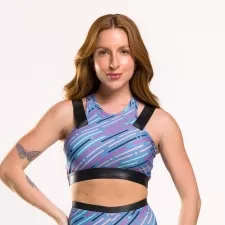 Top em poliamida leve, decote e cavas fechadas com alças e barra em elástico acetinado e forro frontal. Uma peça bem moderna e que chama atenção por sua modelagem original e a composição de cores da estampa com o elástico acetinado. Tão lindo quanto funcional.