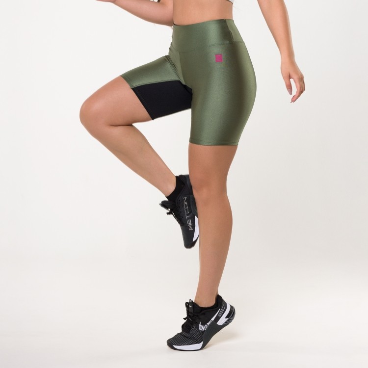 • Bermuda Verde Cacto Metalic com Entrepernas Preto Metalic