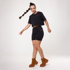 Cropped Street Preta em Moletinho com Vivo Marrom Bourbon
