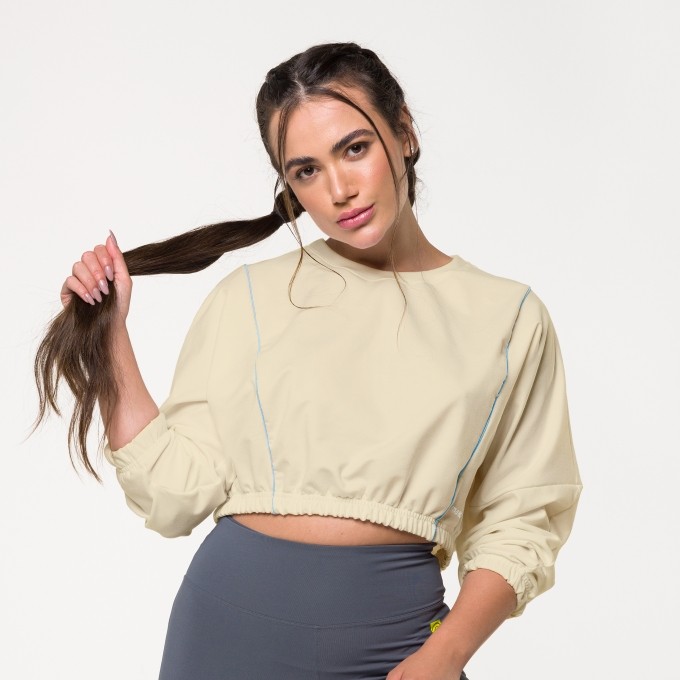 Casaco em moletinho leve e aveludado com manga morcego, comprimento Cropped e acabamento franzido com elástico nos punhos e na barra. Recortes com vivo na frente e nas costas e logo Marche em transfer. Essa peça, nada óbvia, vai muito bem em dias mais frescos, caminhadas em locais abertos ou aquela sala de trabalho com ar condicionado. Vai te proteger daquele friozinho e te deixar linda ao mesmo tempo. Os detalhes em vivo deixam a proposta ainda mais charmosa e alinham a silhueta. Também fica lindo como sobreposição.