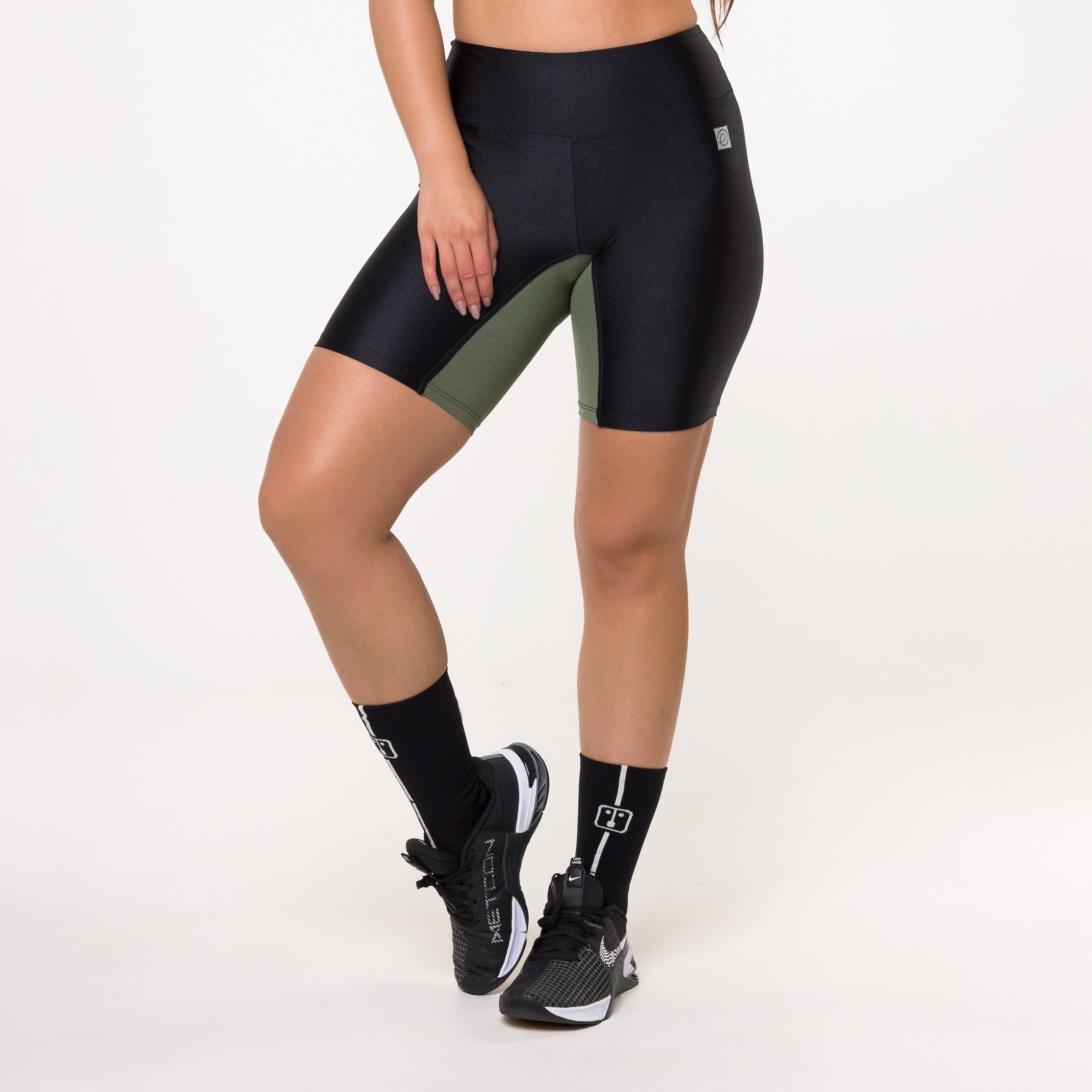 Bermuda Preta Metalic com Entrepernas Verde Cacto Metalic